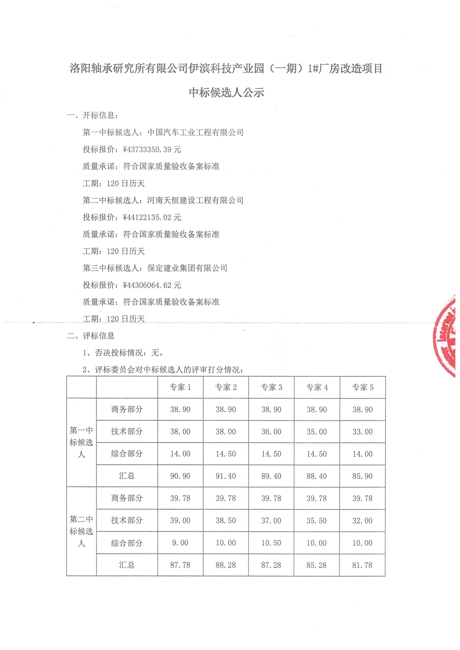 洛陽軸承研究所有限公司伊濱科技產(chǎn)業(yè)園(一期)1#廠房改造項目招標(biāo)公告