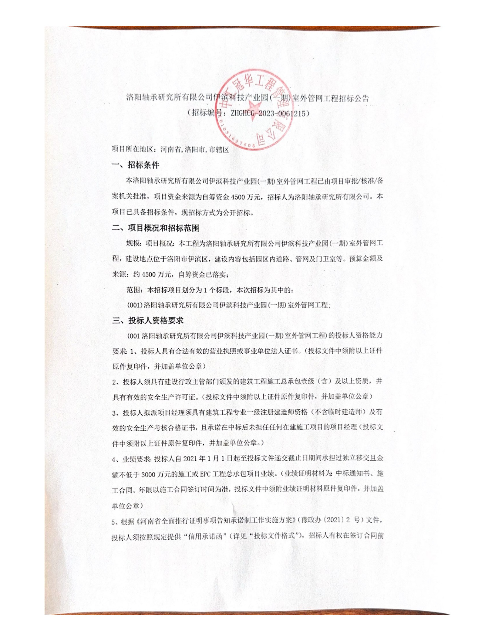 洛陽軸承研究所有限公司伊濱科技產(chǎn)業(yè)園(一期)建設(shè)項目Ⅲ標(biāo)段全過程造價咨詢服務(wù)招標(biāo)公告