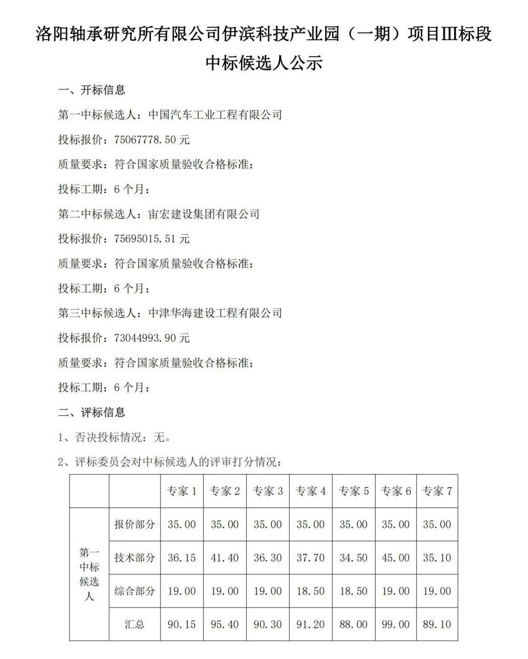 洛陽軸承研究所有限公司伊濱科技產(chǎn)業(yè)園(一期)項(xiàng)目Ⅲ標(biāo)段中標(biāo)結(jié)果公告