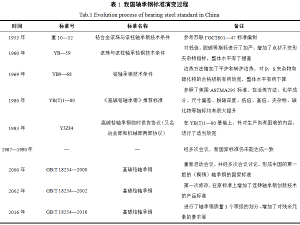 2 我國高碳鉻軸承鋼標(biāo)準(zhǔn)演變過程