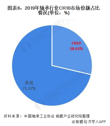 我國軸承制造行業(yè)屬于完全競爭市場,企業(yè)數(shù)量眾多,行業(yè)市場集中度不高。根據(jù)中國軸承工業(yè)協(xié)會數(shù)據(jù)顯示,2019年我國軸承行業(yè)實現(xiàn)營業(yè)收入1770億元,其中排名前十的軸承制造企業(yè)實現(xiàn)營業(yè)收入506.7億元,占比約為28.63%。